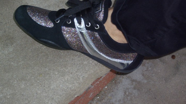I am not an impulse buyer by any means, but the other day when I was walking by Bakers shoe store in midtown Manhattan, glittering multi-colored sneaker stopped me in my tracks, and I had no choice but to enter the store and ask to try on a pair of the sparkly footwear. Usually I would never buy sneakers that were impractical or childish, but impractical and childish these are not. Memorizing, captivating and fun are the adjectives I would use to describe these chicly decorated H by Halston Baillee sneakers. These sneakers added instant glamour to my usual black pants and shirt attire, and are available in three styles: White/Glitter or Black/Glitter & Man Made or Black Multi/Glitter & Suede.