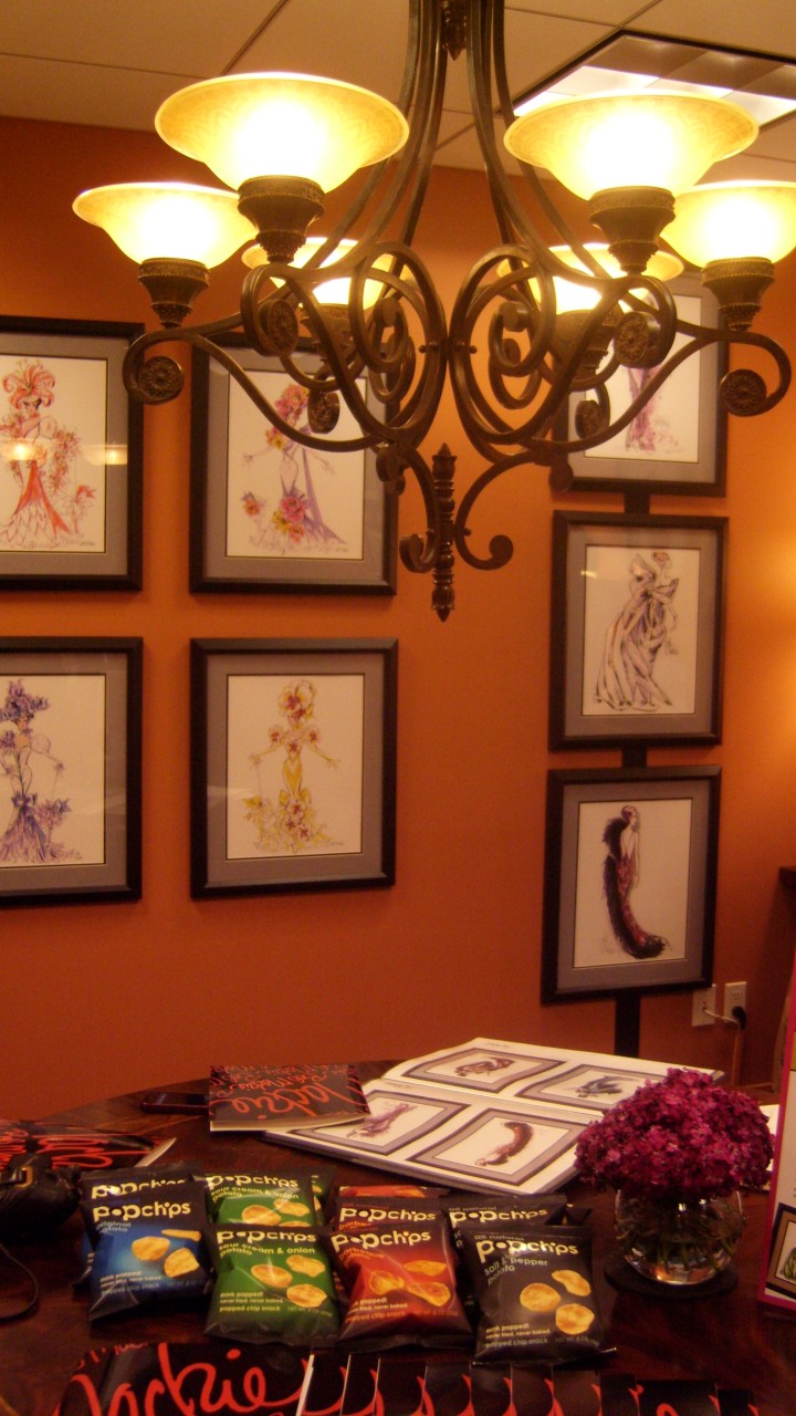 The costume illustrations, which were on display at the Bob Mackie Design Group’s corporate office, consist of 46 illustrated reproductions of the designer’s most whimsical and imaginative designs over the past four decades. I was left awestruck as I walked around the room looking at all the amazing sketches, while munching on yummy Popchips and drinking refreshing Izze beverages provided at the event.