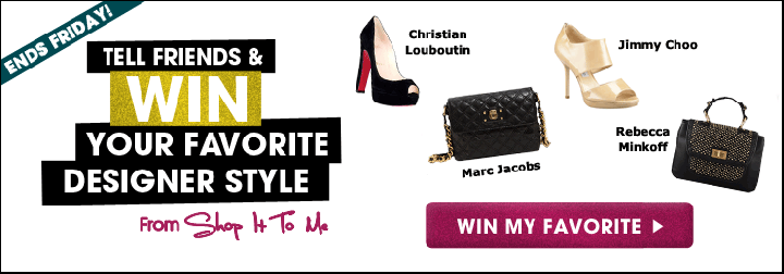 To enter, visit the website, select the designer style you like most, and invite friends to join Shop It To Me. For each friend who signs up, you’ll receive an additional entry!
