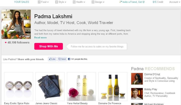 When you become a member of OpenSky (membership is free), you are given a list of celebrities to follow in several different categories including food, health, design and style. Each celebrity hand-picks items to recommend to their followers, and you have to “follow” them in order to get access to their recommendation at up to 20-60% off.