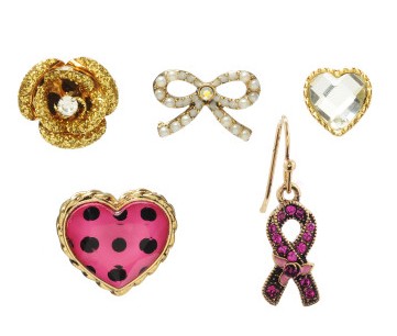 GUESS Watches has teamed up with Susan G. Komen for the Cure® for the 4th year in a row, and will donate $21.00 from the sale of each "Sparkling Pink 2011" watch sold. The watch features a silvertone mixed metal bracelet, and is accented with small pink crystal accents around the top ring. It also includes the traditional breast-cancer pink ribbon in crystal on the dial. The super, chic pink box is included. (Guess.com; $105)Jewelry Designer Maya Brenner created this "Five" necklace to support breast cancer awareness. The necklace is in honor of Lifetime Network's "Five." Directed by Jennifer Aniston, Demi Moore, Alicia Keys and others, “Five,” consists of a series of five short films exploring the impact of breast cancer on women's lives. The profit from the sales of the necklace will be donated to the National Breast Cancer Coalition Fund ($188; mayabrenner.com).Betsy Johnson has been a breast cancer survivor for 11 years. In an effort to contribute to awareness of National Breast Cancer Awareness Month, every year she launches a special fashion line featuring clothing and accessories. A portion of the proceeds of all items sold will be donated to charity. (Pictured above - Breast Cancer Awareness 5 Stud Earring Set, $38 at betseyjohnson.com).These trendy shades by Oakley will not only protect your delicate eyes form the sun, but will also make you feel good knowing that $20 from each sale of these special edition sunglasses will benefit the YOUNG SURVIVAL COALITION® (YSC), a non-profit network focused on the concerns and issues unique to young women affected by breast cancer (Pictured above: Dangerous; $180 at oakley.com).