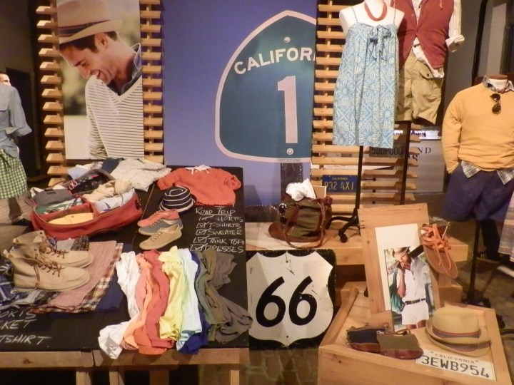 Yesterday I traveled to Paris, was whisked away to California, then stumbled upon a vineyard wedding, and finally relaxed on the beach. Sound like a dream? Well, not quite. This was the set up at the Lands’ End clothing line Spring/Summer 2012 press preview event that I attended yesterday evening. The clothing retailer took attendees on a journey across the country, with intricate table stagings and the fashions to match each destination. The sailor preppy vibe was predominant in this collection for both men and women, with a majority of the clothing, from shorts to dresses, featuring deep navy blues, pin stripes and ship anchors. Soft, lightweight fabrics in the collection contrasted with the thick knit crewneck sweaters I encountered on my journey through the different settings.