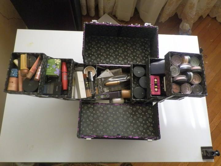 I have my most used lip glosses, concealers, eye shadows, blushes, foundations, and other products in their own separate compartments within one organizer that pulls out to reveal all my goodies. When I’m finished with my makeup, I simply close the organizer and it decreases to half the size so that I’m able to store it underneath a small chair in my room. It also has a handle, so I’m able to carry all my makeup around whenever I need to.