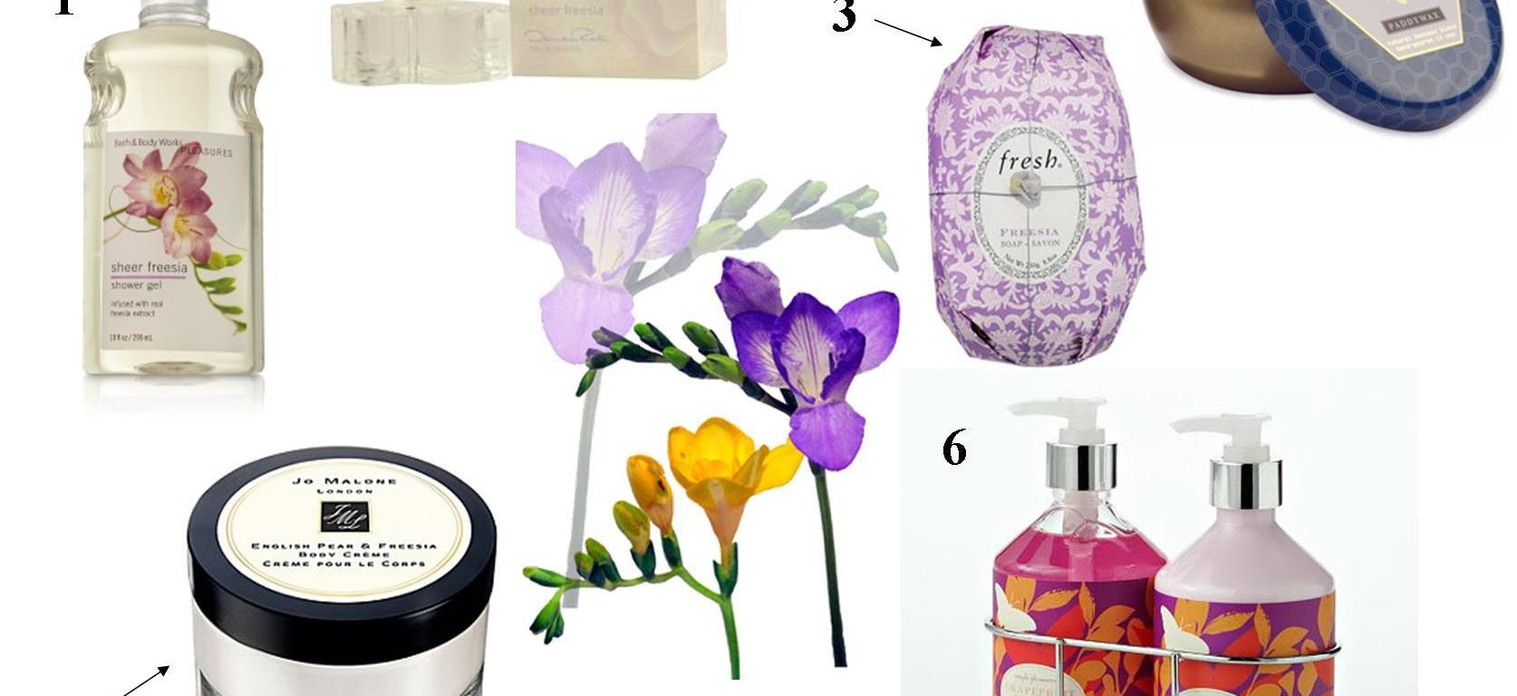 So far on this site, I covered beauty products inspired by lilacs and dahlias. Today, I bring you: freesias. Before this post, I don’t think I ever knew anything about freesias, strongly scented garden plants native to Africa. Apparently, theses dainty flowers are beloved worldwide, and because of their strong sweet/spicy scent, they are often used in a variety of beauty products, as well as candles and air fresheners. A freesia symbolizes fidelity, innocence and sweetness, and is the ultimate symbolism of eternal love, so step aside roses. It’s traditional to give freesias on the 7th wedding anniversary, the year when I guess, doubts arise, to reinforce faithfulness and trust. When I think of trust, I keep replaying the scenes in Aladdin, when the question “Do you trust me?” repeats so frequently that you just want to run into Aladdin’s scrawny, tan arms and scream “Yes!,” but I digress.