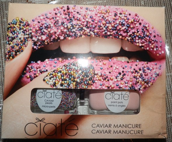 I simply adore the hot new caviar nails trend. Adding little beads reminiscent of caviar adds a 3-dimiessional look to your nails, and is able to be chic without making you look like you work for a circus. This week my sister purchased Ciaté Caviar Manicure™. There are three different head-turning color combos to choose from, and she selected the nail polish in Strawberry Milkshake (opaque pale pink) that comes with Caviar Pearls in Rainbow ($25 at sephora.com).