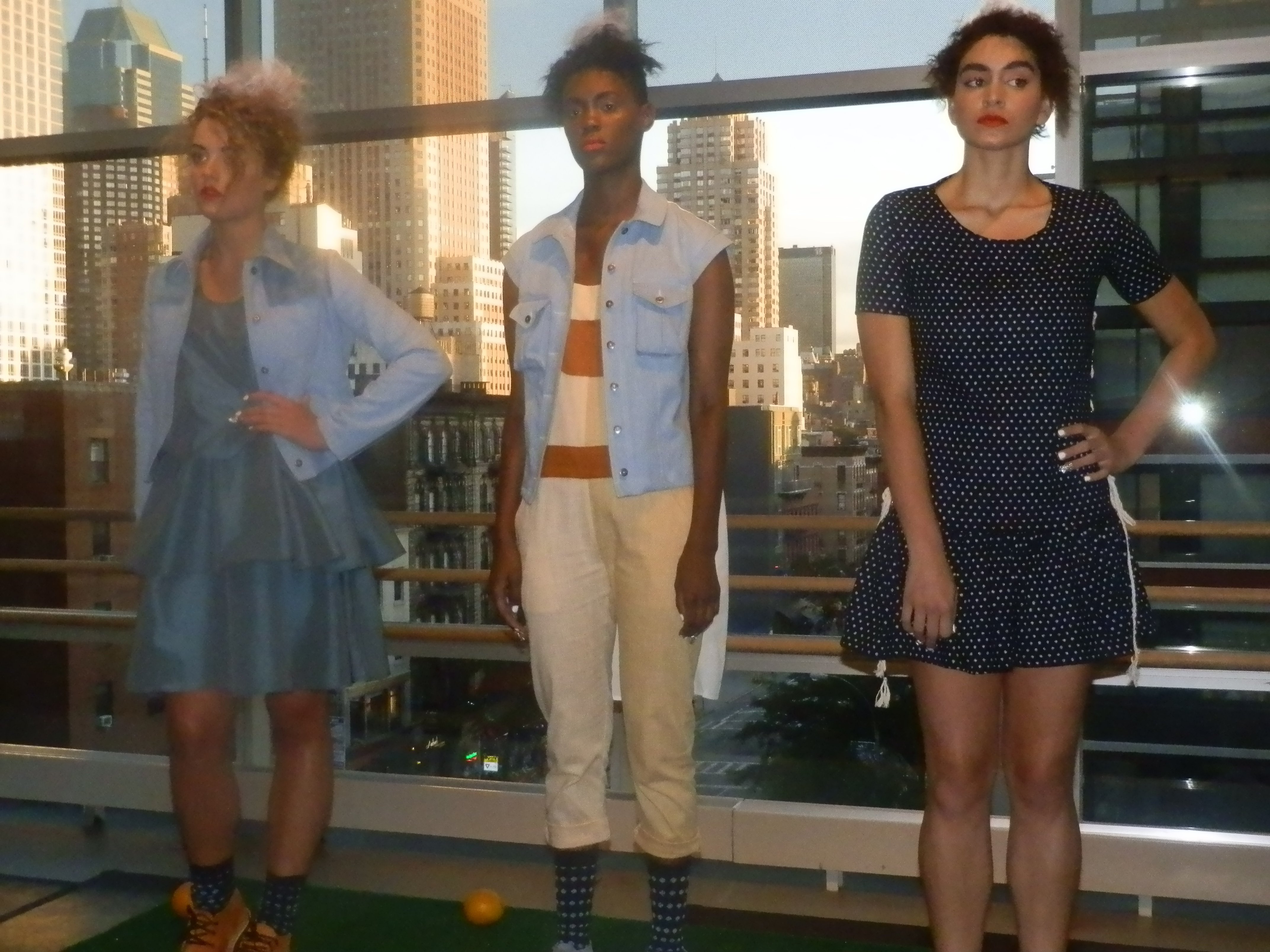 NYC skyscrapers peeked through the glass windows of the The Ailey Studios, as guests marveled at the clothing that seemed to evoke work wear of historic plantation workers mixed with modern-day sophistication. Earthy tones, playful polka dots, color-blocking, and some abstract silhouettes were noticeable trends in the collection.