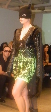 When the first model of a show emerges wearing a Catwoman mask, you immediately know you are about to witness something amazing. Bold, edgy and chic are words I would use to describe the fashions of Middle-Eastern duo Mesho and Nouf Abothnain, who presented their latest collection at Nolcha Fashion Week on Wednesday, September 12th at Pier 59 Studios in New York City.