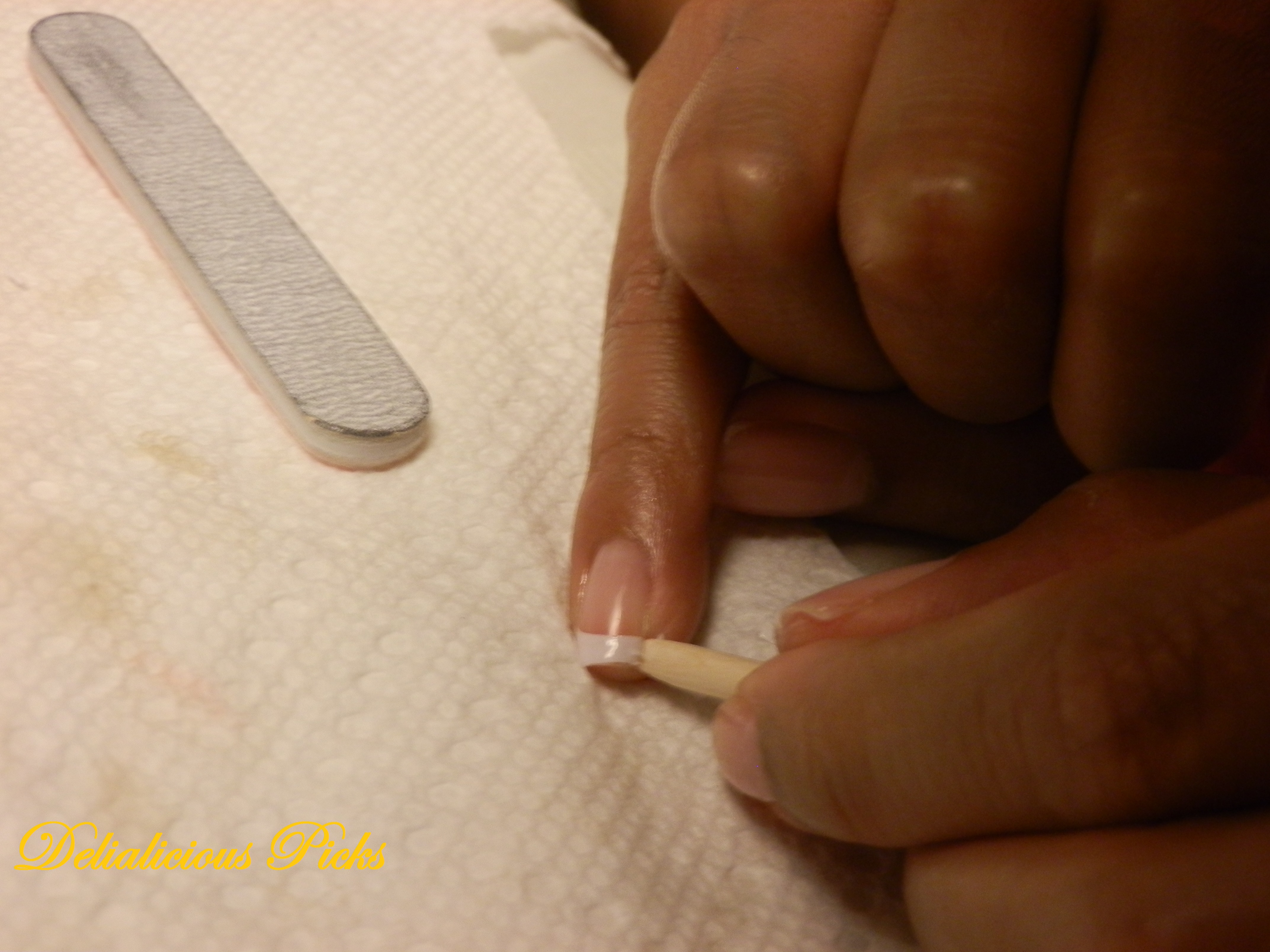 Step 1 – Clean and buff your nail; a self-manicure essentially. I do this with my mini-manicure kit that I purchased at Sephora for $5.00.