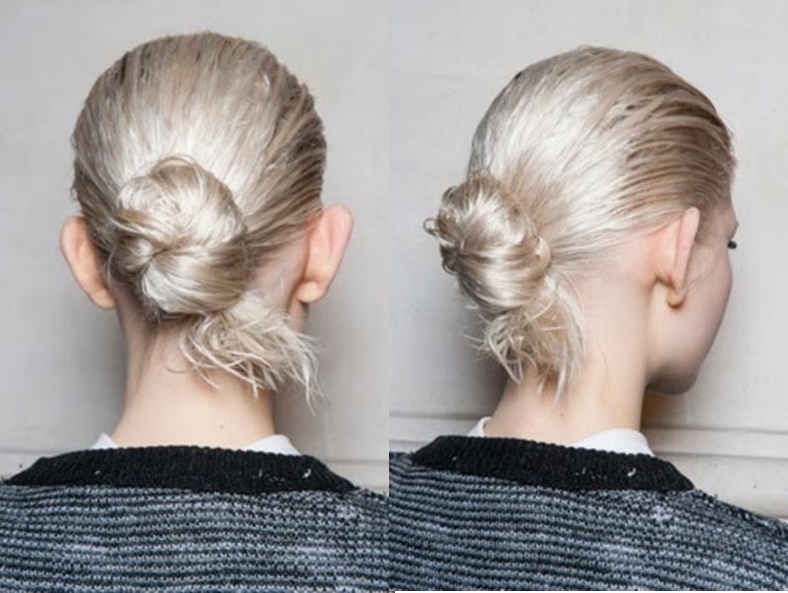 The hair at Lavin’s F/W 2014 collection was amped up with wet and greasy textures to give the hair a nighttime feel to go along with the evening atmosphere created on the runway. A messy updo glistened on the runway for a very sexy and edgy illusion. Here’s how to get the look.