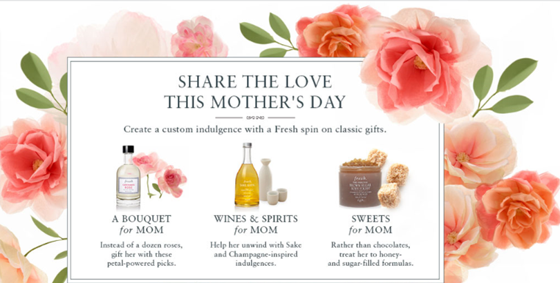Fresh is hosting a Mother’s Day event on May 7th at Fresh Union Square with Co-Founder Alina Roytberg, where guests can customize their gifts with a Fresh spin on classics like a bouquet of roses, wine & spirits and chocolates & sweets.