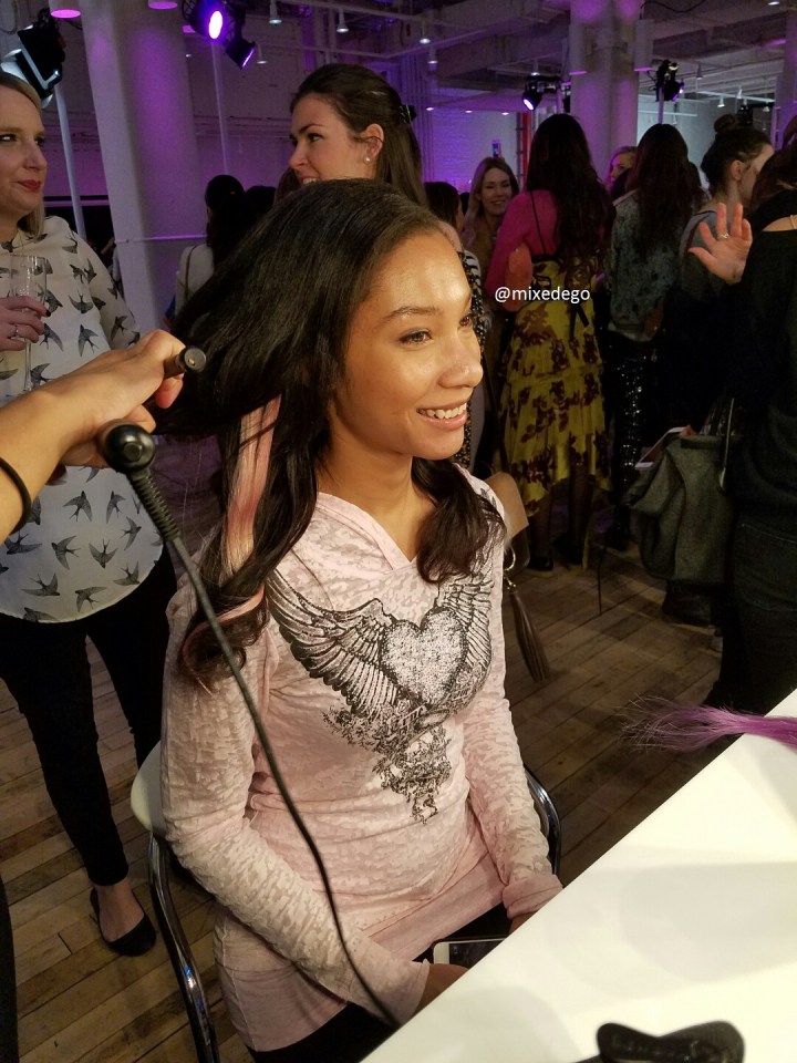 Next, we headed over to a station where we were able to have extensions that were tinted with L’Oréal Paris Colorista Semi-Permanent Color. I got pink extensions, and she opted for the red.