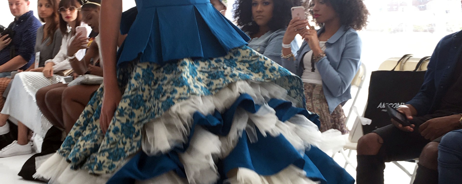 On Tuesday, I attended the fashion show of MAJ Designs, produced by AMCONYC. The show featured beautiful dresses and 2-pieces, including a show-stopping white and blue ballgown, which billowed down the runway with an ethereal flow. The dress, along with several other pieces in the collection, was embroidered with an elegant floral pattern design that lent itself well to both the formal-wear pieces and the outfits that seemed a bit more chic-casual. The collection favored chiffon and fabrics capable of movement, but there were also some well-tailored pieces that clung close to the models, who donned the sophisticated looks. Browse the carousel below to see some of my favorite pieces from the show.