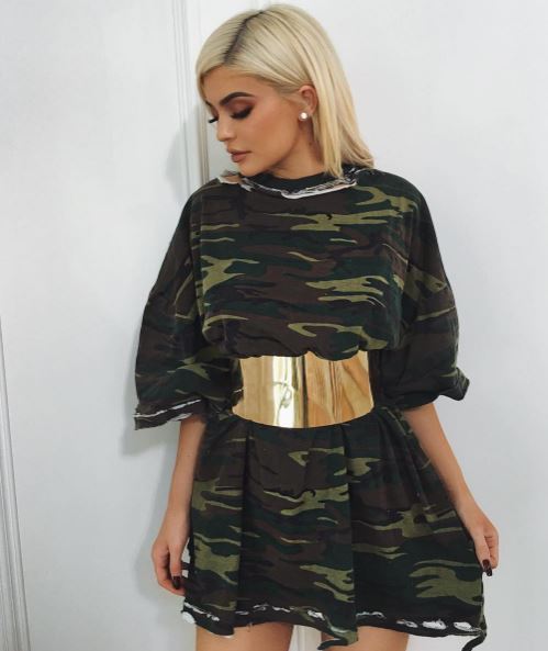 Celeb-spiration: Kylie Jenner’s Gold Waist Belt & Camouflage Dress For Less